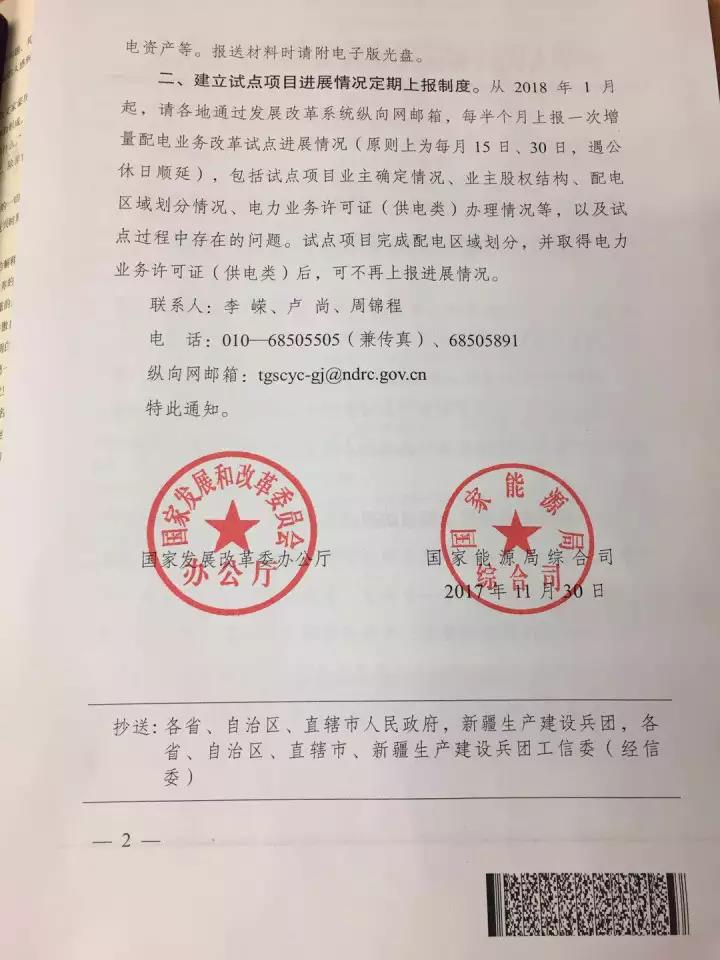 隨著第一批、第二批增量配電改革試點順利落地,12月6日,北京商報記者從業(yè)內(nèi)獲得一份文件顯示,日前,國家發(fā)改委發(fā)布了《關(guān)于加快推進增量配電業(yè)務(wù)改革試點的通知》,提出國家發(fā)改委決定啟動第三批增量配電業(yè)務(wù)改革試點,要求各地盡快組織篩選符合條件的項目,于12月29日前報送國家發(fā)改委體改司、國家能源局電力司。業(yè)內(nèi)人士指出,雖然前兩批約200個試點項目在全國占比不高,但隨著改革不斷推進,未來我國仍有向社會資本全面放開增量配電市場的可能性。