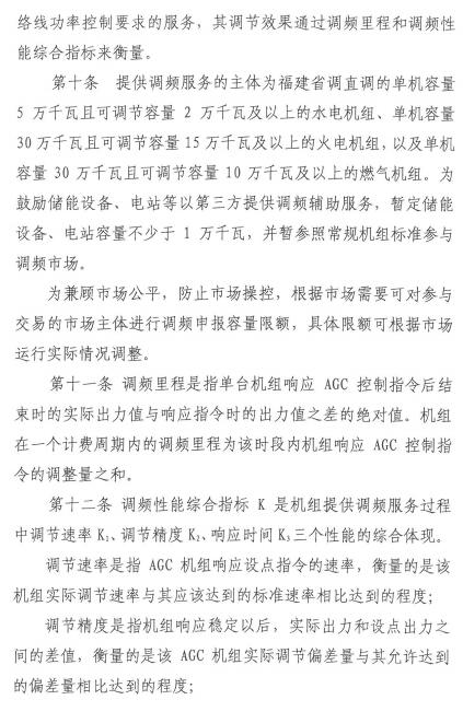 福建能監(jiān)辦日前發(fā)布了《關(guān)于福建省電力調(diào)頻輔助服務(wù)市場啟動(dòng)運(yùn)行有關(guān)工作的通知(閩監(jiān)能市場〔2018〕139號(hào))》、關(guān)于印發(fā)《福建省電力調(diào)頻輔助服務(wù)市場交易規(guī)則(試行)》的通知(閩監(jiān)能市場〔2018〕140號(hào)),定于2018年12月18日起福建電力調(diào)頻輔助服務(wù)市場啟動(dòng)模擬測試運(yùn)行。