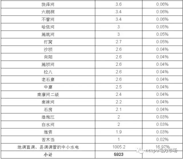 從目前來(lái)看,僅有2004年以后投產(chǎn)、并入省調(diào)范圍且以110kV電壓等級(jí)接入的71家中小水電,按電力市場(chǎng)交易價(jià)格結(jié)算;其余中小水電仍按國(guó)家核定價(jià)格上網(wǎng)。