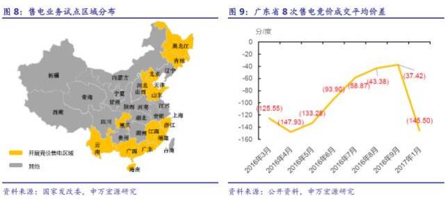 新一輪電力體制改革放開發(fā)、售電兩端,引入市場競爭機制。新一輪電改本著“管住中間,放開兩端”的原則,對除西藏外的30余個省及區(qū)域開展輸配電價改革,開展定價成本監(jiān)審。政府核定中間輸配環(huán)節(jié)的成本及收益率后,在發(fā)電側(cè)、售電側(cè)引入競爭,以期實現(xiàn)發(fā)電側(cè)結(jié)構(gòu)優(yōu)化及售電側(cè)市場放開。