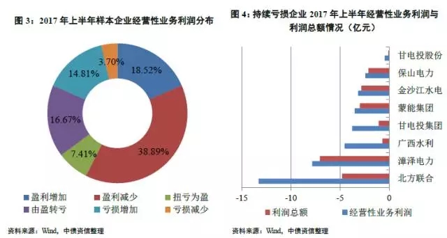 具體地,五大電力集團經(jīng)營性業(yè)務(wù)利潤同比下降均超過80%,利潤總額同比下降均超過55%,其中僅華能集團與國電投集團經(jīng)營性業(yè)務(wù)利潤保持盈利狀態(tài)。此外,北方聯(lián)合、漳澤電力、廣西水利、甘電投集團及其子公司甘電投股份、蒙能集團、金沙江水電、保山電力9家企業(yè)的經(jīng)營性業(yè)務(wù)利潤及利潤總額均持續(xù)(“持續(xù)”代表2016年上半年及2017年上半年財務(wù)數(shù)據(jù)情況,下同)虧損。