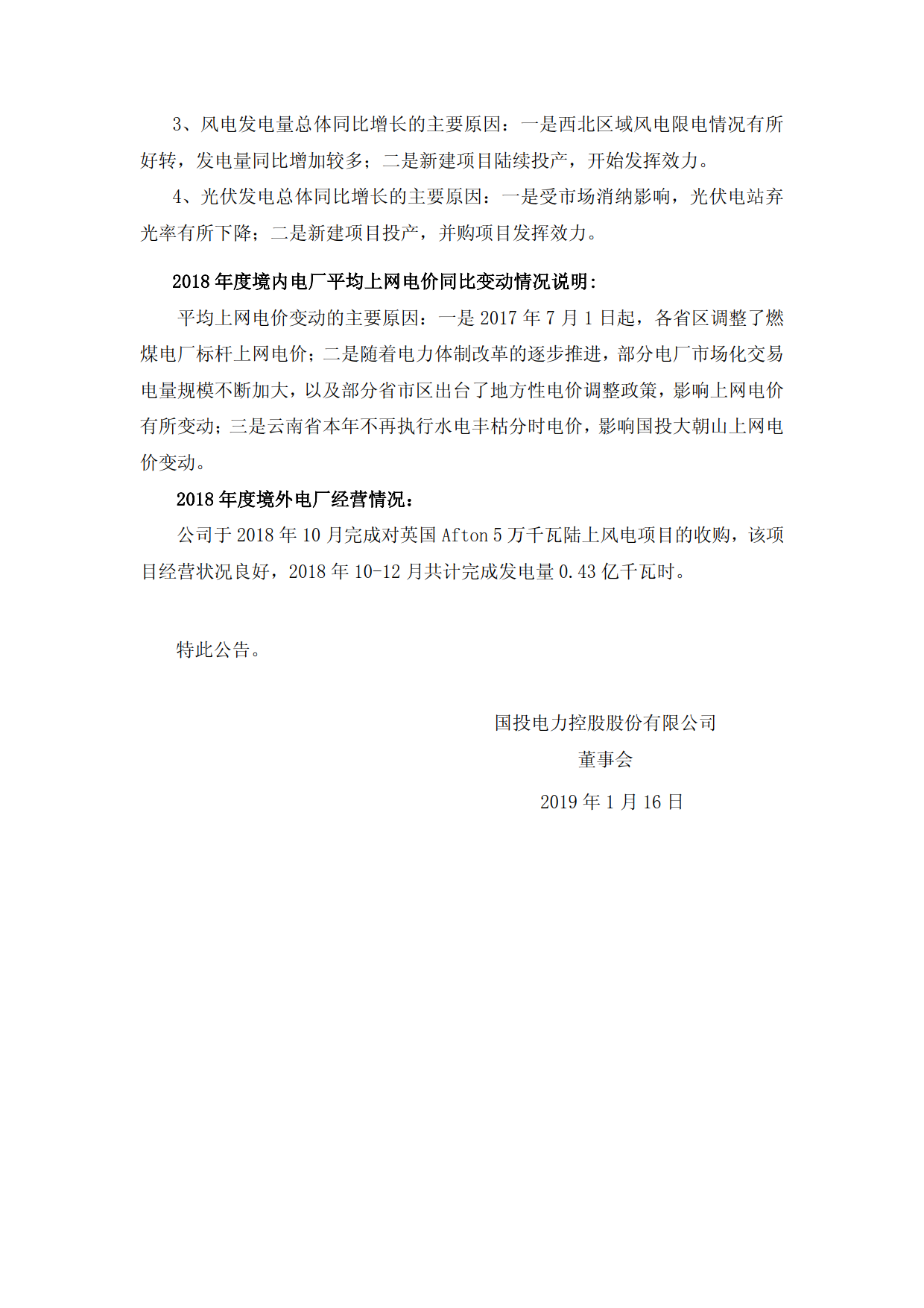“五大四小”之國投電力發(fā)布2018年度主要經(jīng)營數(shù)據(jù)