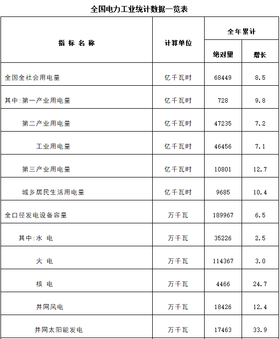 1月18日,國家能源局發(fā)布2018年全社會用電量等數(shù)據(jù)。