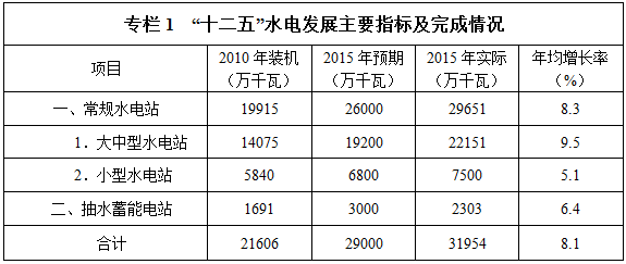 水電發(fā)展“十三五”規(guī)劃(2016-2020年)