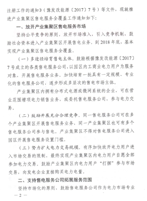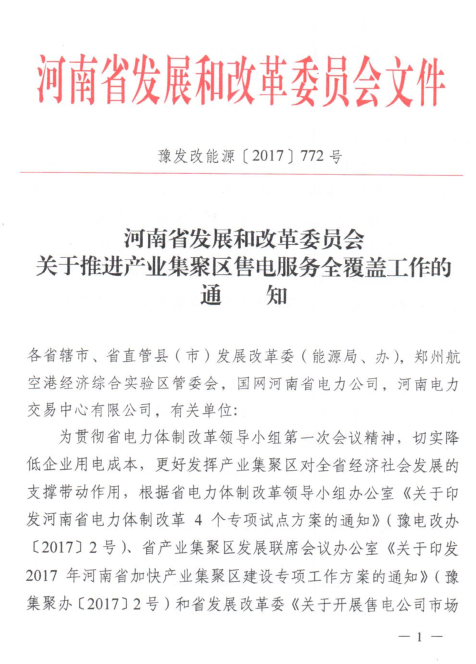 河南發(fā)改委:將推進(jìn)產(chǎn)業(yè)集聚區(qū)售電服務(wù)全覆蓋