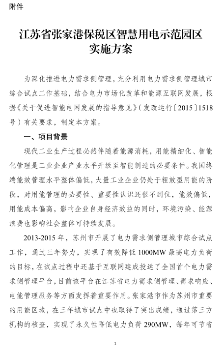 附件:江蘇省張家港保稅區(qū)智慧用電示范園區(qū)實施方案