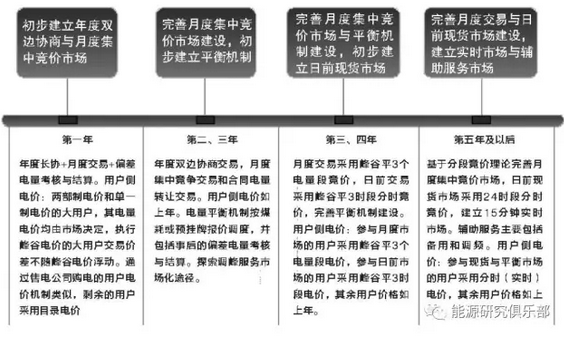 1.第一年:初步建立年度雙邊協(xié)商與月度集中競價市場,對合同偏差電量進行事后結(jié)算和考核。