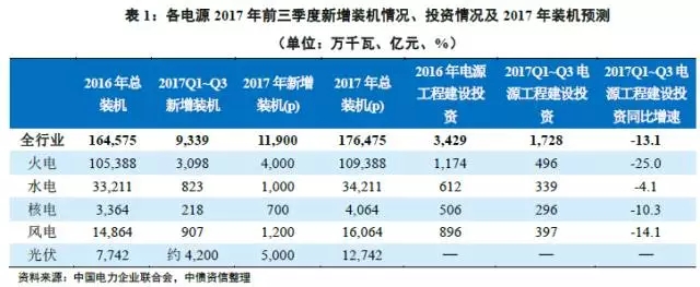 供給方面,受火電“去產(chǎn)能”影響,截至2017年9月末,全國6,000千瓦及以上電廠裝機容量16.65億千瓦,同比增長7.59%,較去年同期回落3.7個百分點。前三季度新增裝機9,339萬千瓦,其中,風(fēng)電、光伏機組的貢獻率超過55%。