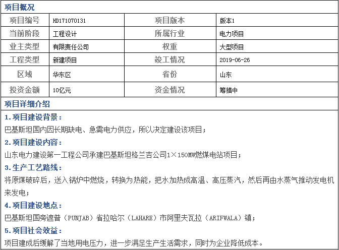 巴基斯坦格蘭吉1×150MW燃煤電站項(xiàng)目