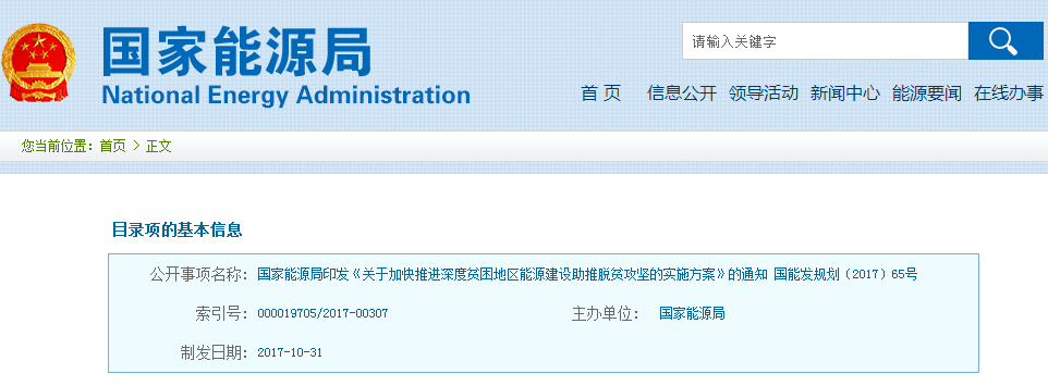國家能源局印發(fā)《關于加快推進深度貧困地區(qū)能源建設助推脫貧攻堅的實施方案》的通知