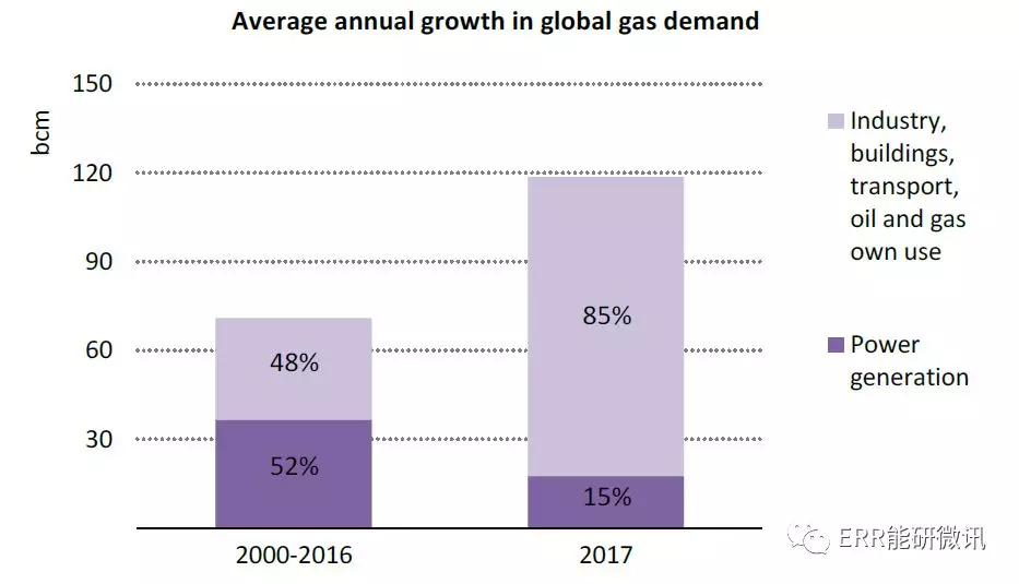 天然氣:全球天然氣需求量增長了3%,主要是因?yàn)樘烊粴夤?yīng)的豐富性和廉價性。僅中國天然氣需求的增長就占全球增長的近30%。過去的十年中,全球天然氣需求增長的一半來自電力部門,但是去年,超過80%的增長來自工業(yè)和建筑。