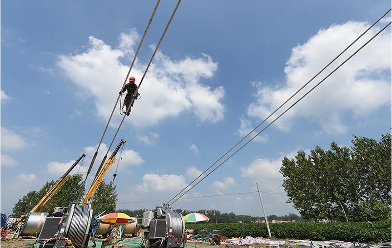 錫盟—泰州±800千伏直流特高壓放線施工