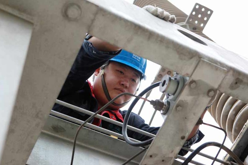 “電壓正常!”開關(guān)班的劉洋站在3米梯上盯著不斷波動的電壓數(shù)值,對絕緣子另一端記錄新六氟化硫密度表讀數(shù)的張亮喊到。“我們7點鐘從工區(qū)出發(fā),不到8點就到達變電站。昨天公司發(fā)布了雷雨天氣預(yù)報信息通知,我們不僅要和自己賽跑,還要和老天比時間。”開關(guān)檢修一班班長說,“現(xiàn)在我們在更換113開關(guān)的六氟化硫密度繼電器,新的繼電器從原來的零下20度閉鎖變成零下40度再發(fā)出閉鎖信號,不僅保證了開關(guān)的良好性能,又為迎峰度冬期間設(shè)備正常穩(wěn)定運行提供可靠保證。”
