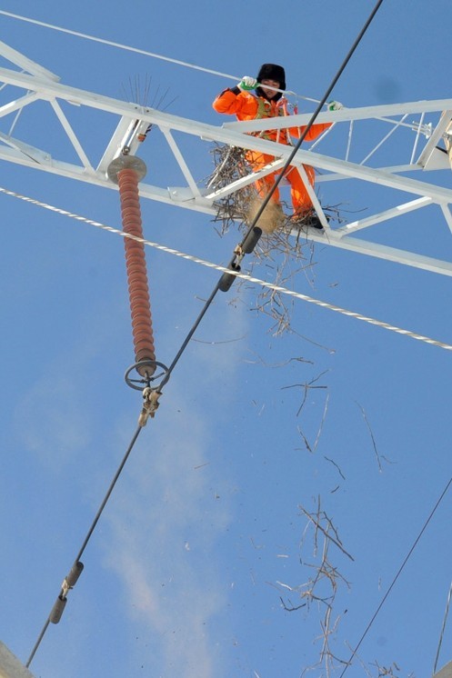 威海冬季雪霧天密集,山東威海供電公司作業(yè)人員趁著難得的雪晴天開(kāi)展高空作業(yè),對(duì)區(qū)域內(nèi)所有的220千伏備用線路進(jìn)行消缺,為主網(wǎng)安全穩(wěn)定運(yùn)行提升保險(xiǎn)系數(shù)。圖為1月,作業(yè)人員冒嚴(yán)寒更換220千伏寧戚線老化受損的絕緣子。220千伏寧戚線從山東煙臺(tái)到威海,是威海最早接入的220千伏線路之一,為威海區(qū)域經(jīng)濟(jì)發(fā)展提供了強(qiáng)勁的動(dòng)力之源。
