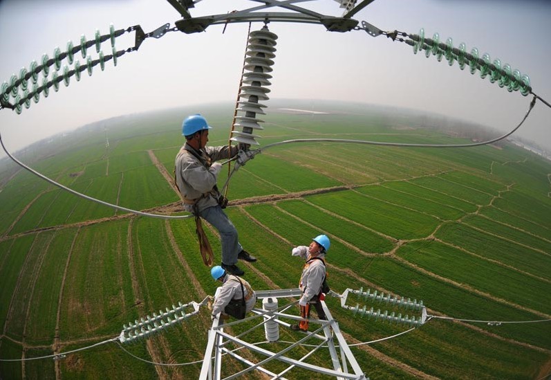 2013年3月7日,在安徽省滁州市定遠(yuǎn)縣永康鎮(zhèn)大唐村,電力工人在高空檢修供電線路。為保障春耕生產(chǎn)正常用電,國(guó)家電網(wǎng)安徽省滁州供電公司成立一支由技術(shù)骨干組成的“共產(chǎn)黨員服務(wù)隊(duì)”,對(duì)全市農(nóng)業(yè)生產(chǎn)線路、春灌電力設(shè)備等進(jìn)行了一次全面檢修維護(hù),同時(shí)專門(mén)開(kāi)辟農(nóng)業(yè)用電“綠色通道”,為群眾破解用電難題,確保春耕生產(chǎn)可靠用電。