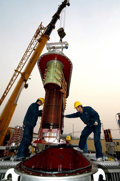 為保證頓坊店鄉(xiāng)電力客戶在迎峰度夏期間能夠用上放心電,衛(wèi)輝市電業(yè)局利用近期負(fù)荷低谷階段,對35千伏頓坊店變電站已經(jīng)運行十年的2號主變進(jìn)行大修,同時處理該間隔其它安全隱患。3月21日,筆者跟隨該局變檢工區(qū)員工,記錄了這次工程的核心部分——“吊芯手術(shù)”。