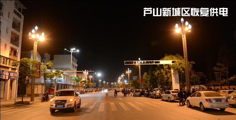 圖3:4月20日21時(shí)30分,經(jīng)過國網(wǎng)四川電力搶修人員緊張搶修,蘆山新城區(qū)恢復(fù)供電。 作者:湯小強(qiáng)