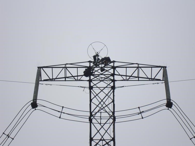 2013年6月2日,在安徽省定遠(yuǎn)縣倉鎮(zhèn)北鄭村,二名電力職工正在80多米的高空作業(yè),對500千伏淮南市洛(河)至滁州市清(流)5309輸電線路進(jìn)行維護(hù)、維護(hù)。當(dāng)日,安徽送變電工程公司組織100多名技術(shù)人員對500千伏洛