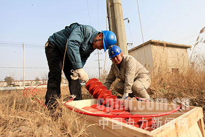 中電新聞網(wǎng)訊 通訊員 吳敬華 報道 12月7日,山東省梁山縣供電公司員工在楊營鎮(zhèn)櫻花路附近更換35千伏西楊線萬達(dá)碳素分支線6號桿故障避雷器,保證客戶安全可靠用電。