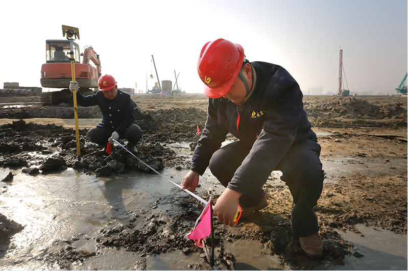 【背景】±800千伏錫泰特高壓直流換流站站址內(nèi),工程建設(shè)者們正冒著零下8攝氏度的嚴(yán)寒進(jìn)行基礎(chǔ)施工。