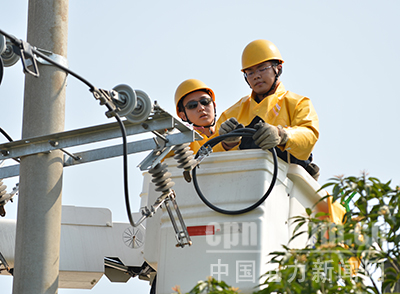 在福建福州晉安區(qū)的井店村,國網(wǎng)福州供電公司配電帶電作業(yè)三班的5名工作人員正在進行帶電接火作業(yè),確保該村公園的正常用電。
