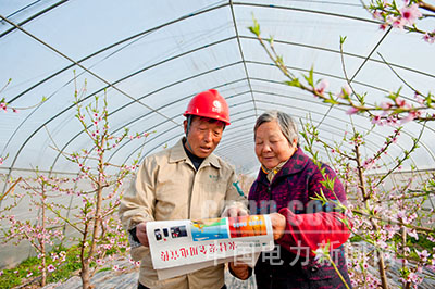 3月17日,江蘇泰州靖江市供電公司員工來到生祠鎮(zhèn)利珠村蟠桃園向果農(nóng)介紹安全用電知識。