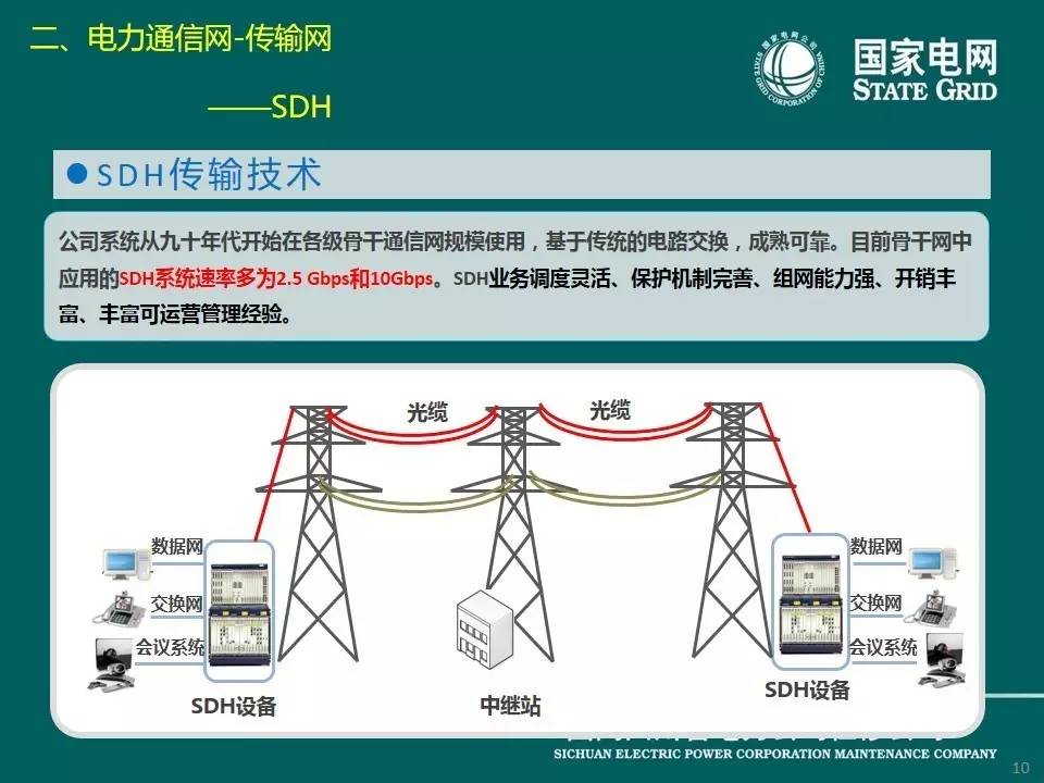 現(xiàn)在介紹傳輸網(wǎng),它是電力通信的基礎(chǔ)網(wǎng)絡(luò),由傳輸介質(zhì)和傳輸設(shè)備組成。電力通信網(wǎng)傳輸介質(zhì)主要包括光纜、無線電和輸電線路,分別對應(yīng)光纖通信、微波、衛(wèi)星通信、電力線載波通信等方式。