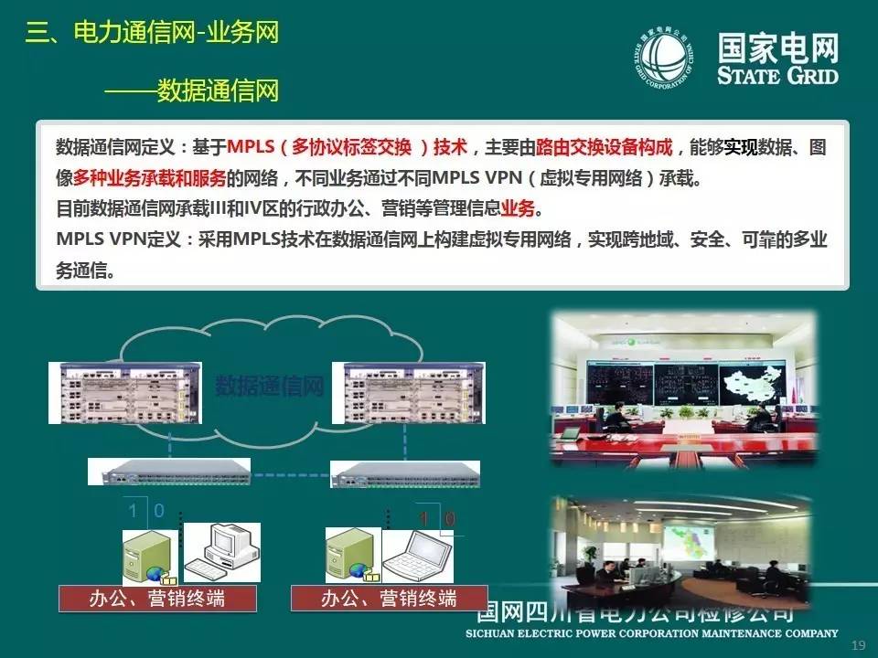 數(shù)據(jù)通信網(wǎng)主要由路由交換設(shè)備構(gòu)成,能夠?qū)崿F(xiàn)數(shù)據(jù)、圖像多種業(yè)務(wù)承載和服務(wù)的網(wǎng)絡(luò),不同業(yè)務(wù)通過不同MPLS VPN(虛擬專用網(wǎng)絡(luò))技術(shù)承載。目前數(shù)據(jù)通信網(wǎng)承載行政辦公、營銷等管理信息業(yè)務(wù)。