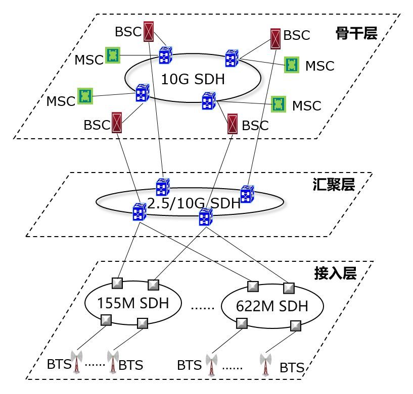 下面這個,是一個典型的2G移動通信網絡的傳輸網架構: