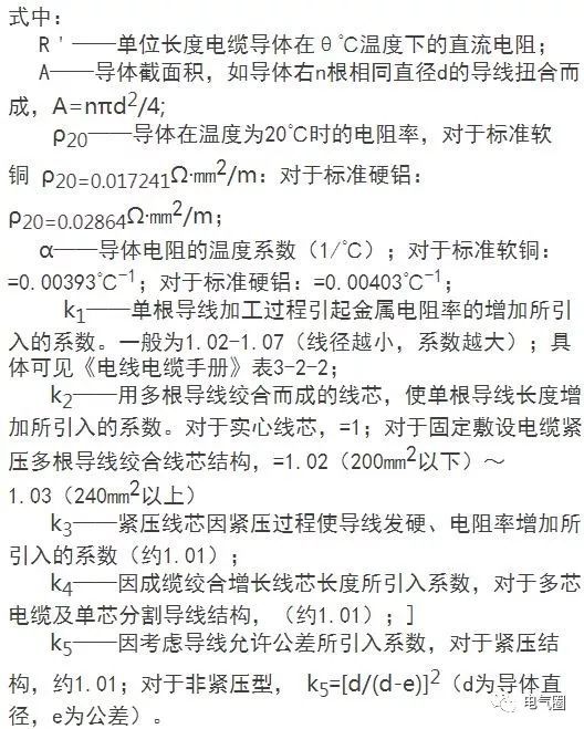 單位長(zhǎng)度電纜的導(dǎo)直流電阻用下式計(jì)算: