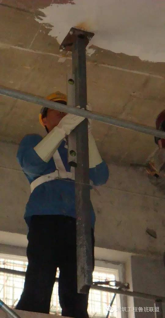 5、在兩端立柱上下各拉一根細(xì)線,用于確定中間立柱焊接位置。