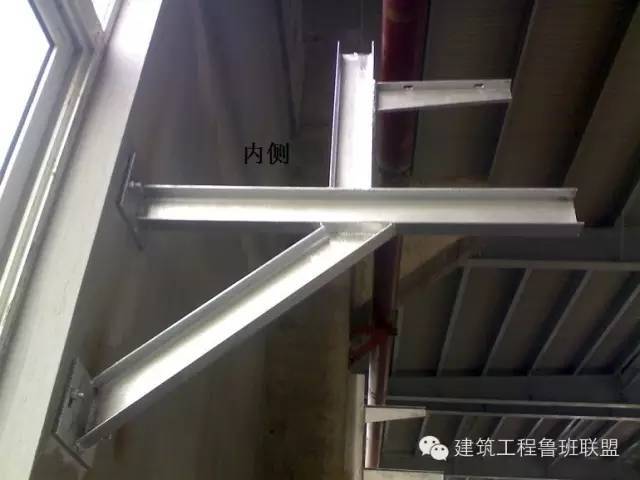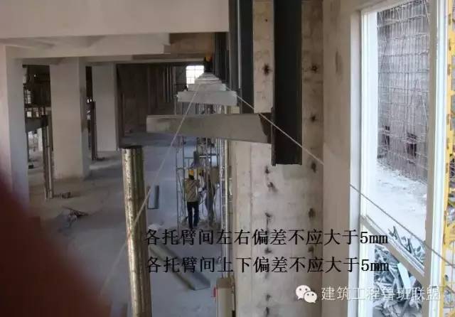 2、兩端托臂焊接完后,在兩端托臂上拉兩條水平線,用于確定中間托臂高度,拉線要拉緊防止中間下垂。
