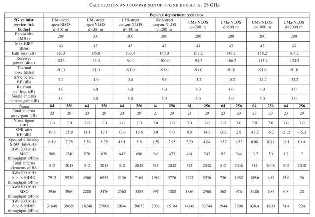 圖7、28GHz 上行鏈路預(yù)算