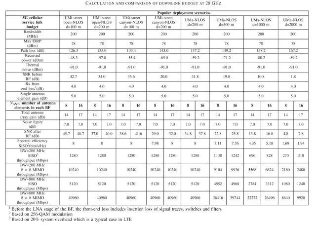 圖8、28GHz 下行鏈路預(yù)算表
