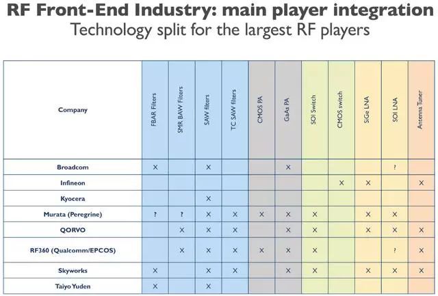 圖11、射頻前端產(chǎn)業(yè)鏈中的主要玩家