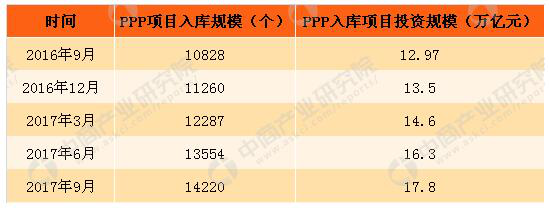 2016-2017年中國PPP入庫項目及投資金額