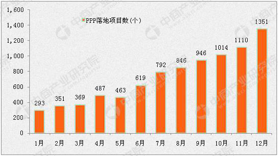 全國PPP落地項目均呈逐月持續(xù)穩(wěn)步上升態(tài)勢。2016年第四季度,全國落地項目數(shù)月均超過1000個,2016年12月末,全國PPP落地項目數(shù)量超過1351個,創(chuàng)歷史新高。