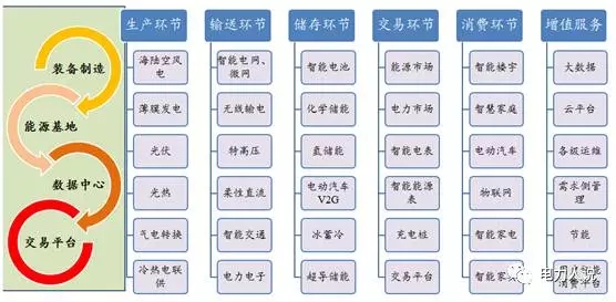 因能源結(jié)構(gòu)、能源市場(chǎng)化程度和用能技術(shù)等方面差異,不同國(guó)家實(shí)施能源互聯(lián)網(wǎng)的路徑和技術(shù)細(xì)節(jié)有所不同,但均涉及到如下圖所示的能源產(chǎn)業(yè)環(huán)節(jié):