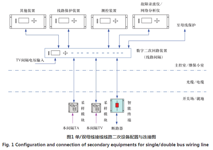 下文將分別介紹單/雙母線接線的線路間隔、母線間隔和全站二次系統(tǒng)總體架構(gòu)。然后以TV間隔、母聯(lián)(分段)間隔、主變間隔為例介紹方案。