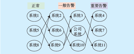 圖2為某系統(tǒng)應(yīng)用拓?fù)鋱D,該系統(tǒng)共調(diào)用系統(tǒng)服務(wù)12個,且各服務(wù)調(diào)用響應(yīng)時間均較少,系統(tǒng)運行狀態(tài)良好。若某應(yīng)用響應(yīng)過慢,系統(tǒng)圓形圖標(biāo)會改變?yōu)橄鄳?yīng)狀態(tài)顏色,方便運維人員及時發(fā)現(xiàn)問題。