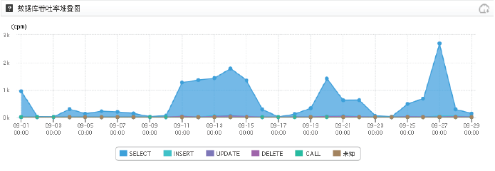 圖5顯示系統(tǒng)運行過程中耗時排在前5的SQL操作,運維人員在查看SQL語句的相關(guān)表及完整SQL語句信息后,對SQL語句進行調(diào)優(yōu)。從圖6可知應(yīng)用數(shù)據(jù)庫各操作的吞吐率。