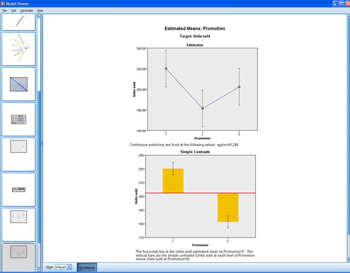 GLMM 提供了模型的可視表示,您可以直觀看到每個預(yù)測因素的強(qiáng)弱。在本示例中,promo 變量對銷售影響最大。