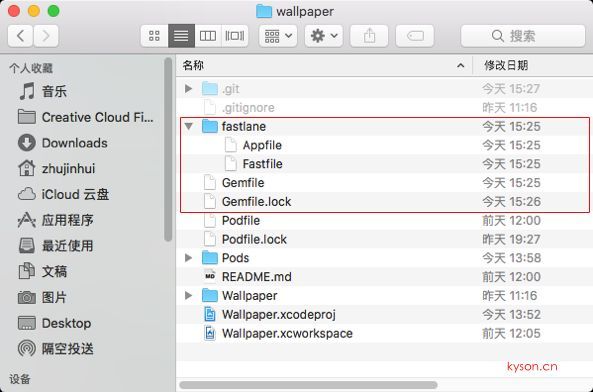 具體的安裝和初始化,本文稍后會(huì)詳細(xì)講述,先帶大家分析一下安裝后的fastlane的目錄結(jié)構(gòu)。紅色區(qū)域就是多出來的文件。