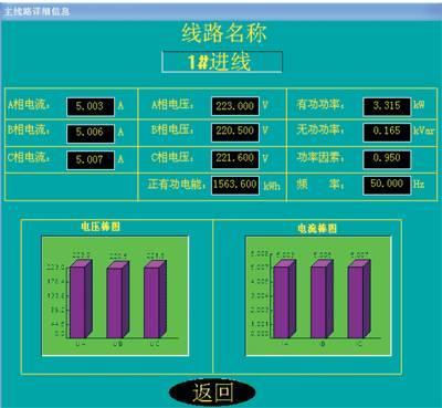 標(biāo)準的變配電系統(tǒng)具有CAD一次單線圖顯示中、低壓配電網(wǎng)絡(luò)的接線情況,龐大的系統(tǒng)具有多畫面切換及畫面導(dǎo)航的功能。主畫面可直觀顯示各回路的運行狀態(tài),主要電參量直接顯示于人機交互界面并實時刷新。