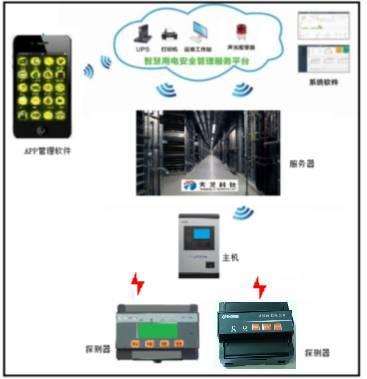 系統(tǒng)由電氣火災(zāi)監(jiān)控探測(cè)器、故障電弧探測(cè)器、無(wú)線發(fā)射模塊、主機(jī)、服務(wù)器、系統(tǒng)軟件、APP軟件、工作站、打印機(jī)、UPS電源等組成。
