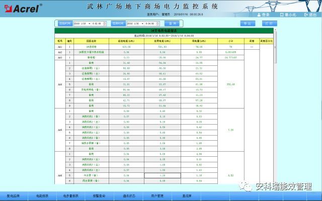 為了實現對本商城內各回路用電量的監(jiān)管,系統設計了用電管理報表,系統通過對有功電度的采集,按照回路名稱的不同,自動生成日報表、月報表和年報表并有報表打印功能,并可對某一回路的某一時間段內的用電量進行查詢,可以幫助物業(yè)建立有效的用能管理考核制度。通過系統的建設和制度的建立,使各入駐商鋪管理人員節(jié)能意識大大提高,有效的節(jié)約了商城管理辦公能源消耗。