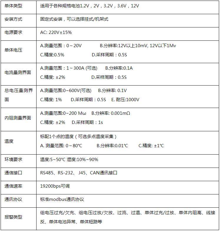 二、BCSU蓄電池組在線監(jiān)測(cè)系統(tǒng)技術(shù)參數(shù)