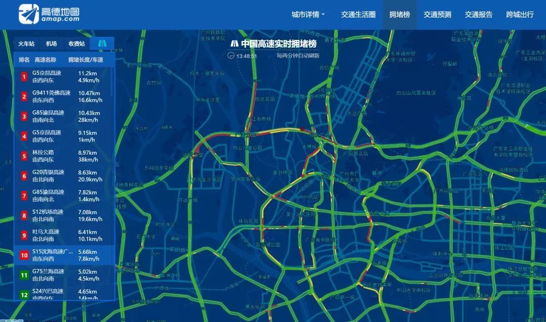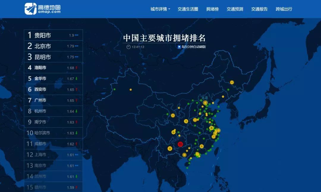 高德地圖在所有的導(dǎo)航App中,目前市場占有量第一,通過高德地圖交通大數(shù)據(jù),我們可以得到很多關(guān)于交通方面的實時數(shù)據(jù)。