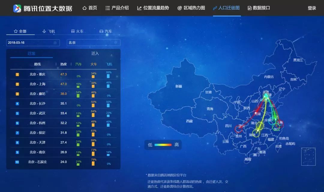 2)遷徙,只能看到全國的遷徙情況,如下圖所示。