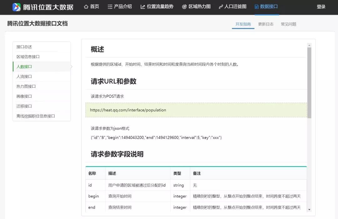4)數(shù)據(jù)接口,騰訊位置大數(shù)據(jù),為數(shù)據(jù)分析師提供了友好的數(shù)據(jù)接口,我們可以直接使用對應(yīng)的數(shù)據(jù)接口進行數(shù)據(jù)的訪問呢,簡單實用,如下圖所示。
